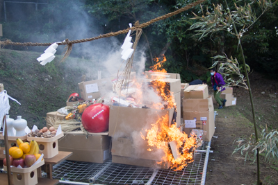 「お焚き上げ」という言葉を聞いてぴんとくるのは内地出身の方に多いかもしれません。「お焚き上げ」は神社仏閣にもちこまれた縁起物(古くなったお札やしめ縄、だるまや破魔矢など)を浄火によって燃やすという行事です。