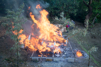 …ちょっと洒落にならないくらいの炎が上がりました。初回なので一度に燃やす縁起物の量がちょっと多すぎたようです。