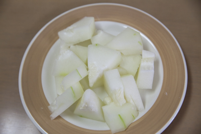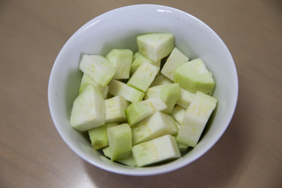 見た目は冬瓜に似ていますが、こちらは青臭さがあります。