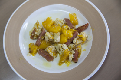 マンゴーから染み出た甘い果汁が塩味のあるポークと絶妙なハーモニー。
