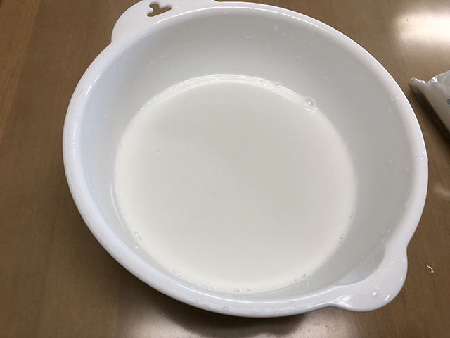 手順は簡単。水にいもくずをサラサラになるように溶かして(いもくずの入れすぎに注意)、他の材料を混ぜて焼けばOK!