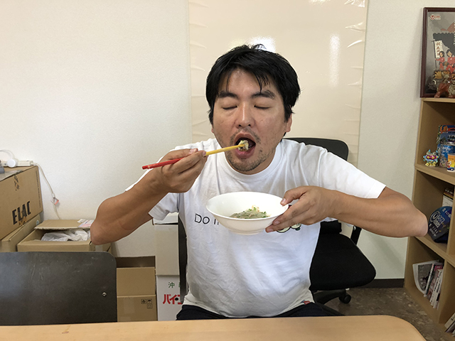 アレが何かわからなかったのか普通に口に運ぶやんばるたろう氏。