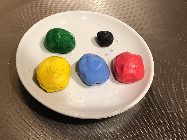 カラフルムーチーを作るには、もち粉を溶かす水に食用色素を混ぜておくのがはやそうです。