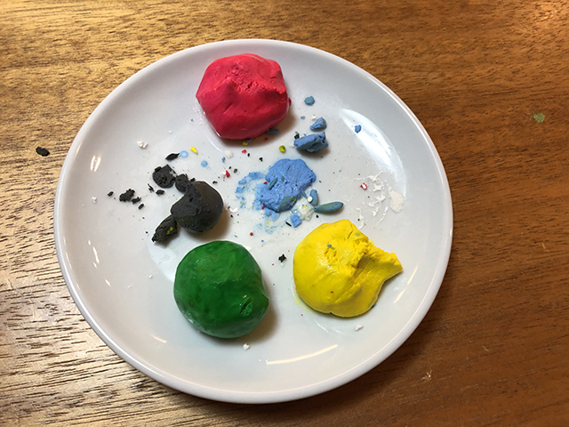 息子にカラフルムーチーを見せたところ、汚いから食べない!と言われました。落ちたお菓子とか気にせず食べるくせに!
