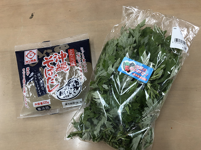 買ってきた沖縄そばだしとフーチバーです。