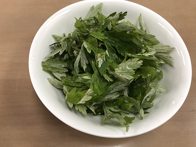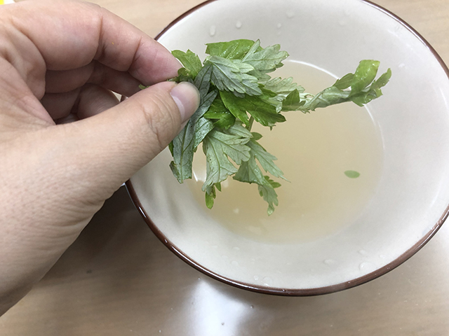 生のフーチバー(よもぎ)は苦いのに、沖縄そば出汁につけると苦くなくなる。あれって不思議じゃないですか?何秒ぐらい浸せば苦くなくなるのか調べた