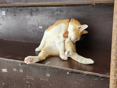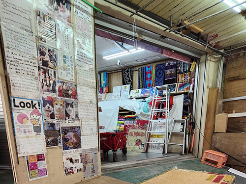 ねこ店長のみーちゃんで知られる老舗のタオル販売店・嘉数商会をのぞくと、いつもはぎっしりと商品が積まれている店頭もスッカラカンで、開店休業状態。みーちゃんだけが通常通り出勤していた。それもそのはず、後からわかったが、実は平和通り商店街のパブリックビューイングを仕切る敏腕リーダーこそが、嘉数商会を営む嘉数信太郎さんだった。なんと!