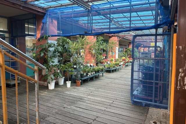 観葉植物が置かれていますが、南館は現在ホームセンタータバタの園芸コーナーが入っています。