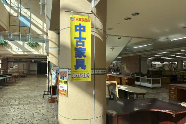 かつてトイザらスに行けたエスカレーターは米軍放出家具で塞がれています。