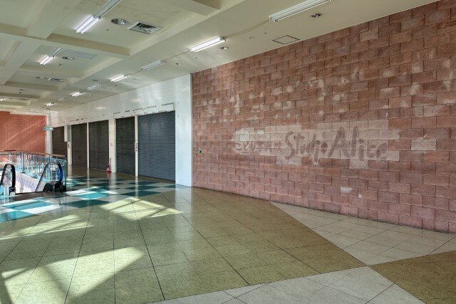 かつてのテナントがそのまま残っています。ちょっと見にくいですが、南館にはシェイキーズ、宮脇書店、GEOがありました。