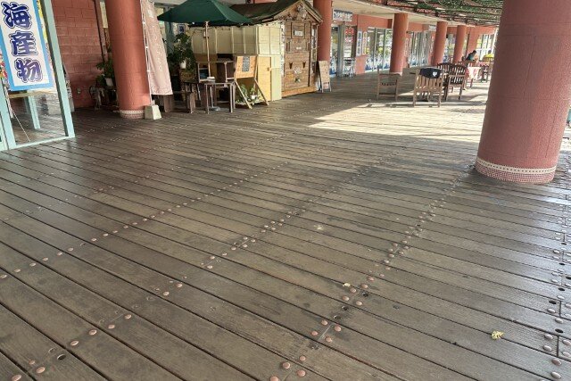 南館前。ネーブルカデナといえばウッドデッキが特徴的。