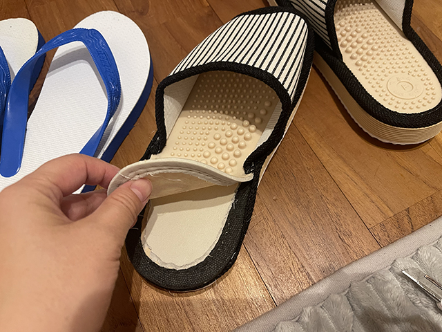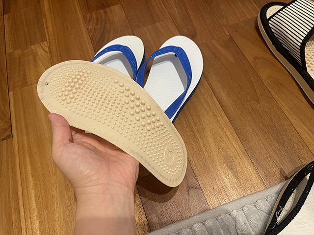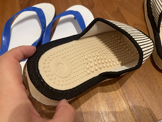 履いて歩いてみると、適度な刺激があっていい感じ。足の裏がじんわり熱くなる!