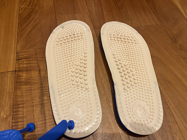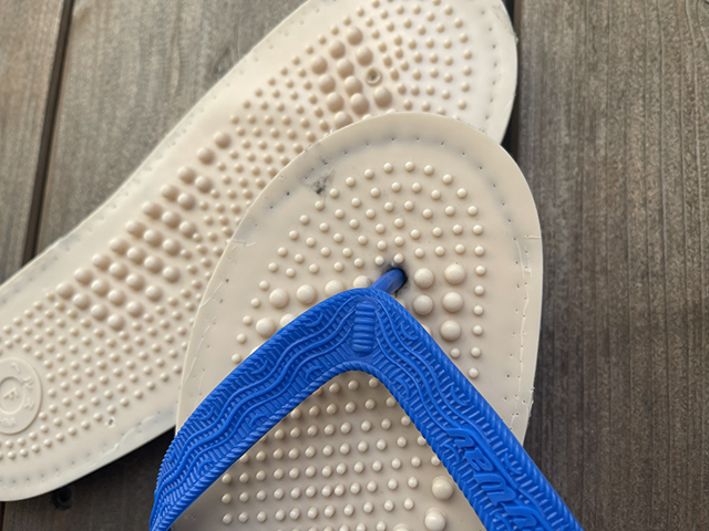 サンダルに凹凸のあるインソールを貼り付けているだけの構造なので、インソールを摘出します。