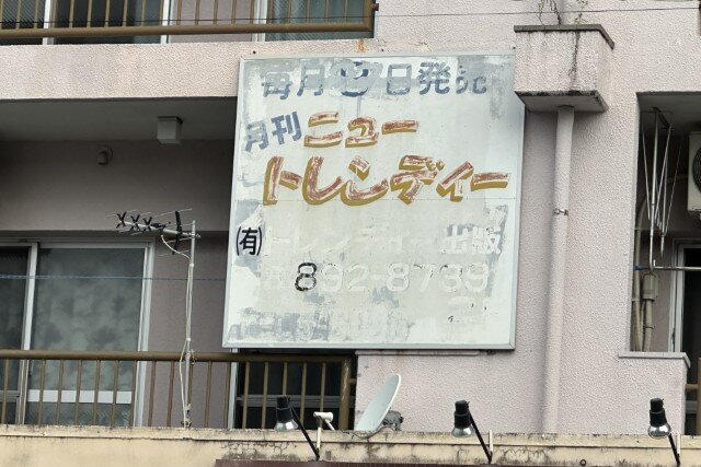 普天間で見つけた月刊ニュートレンディの看板。もうニューでもトレンディーでもなくなってしまっていますが、どんな雑誌か気になります。県立図書館にあるらしいので今度読んでみようと思います。